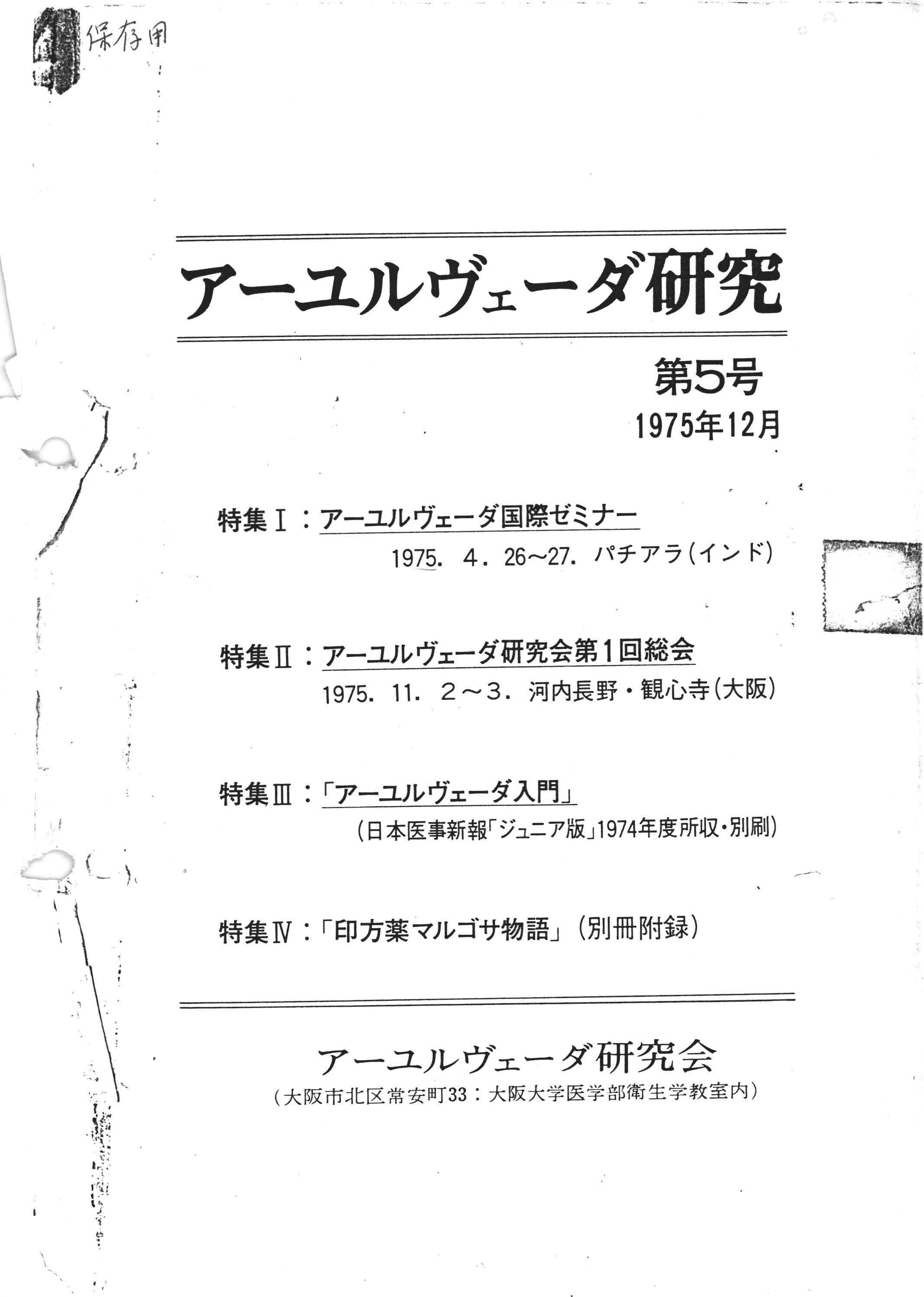 アーユルヴェータ研究 5号