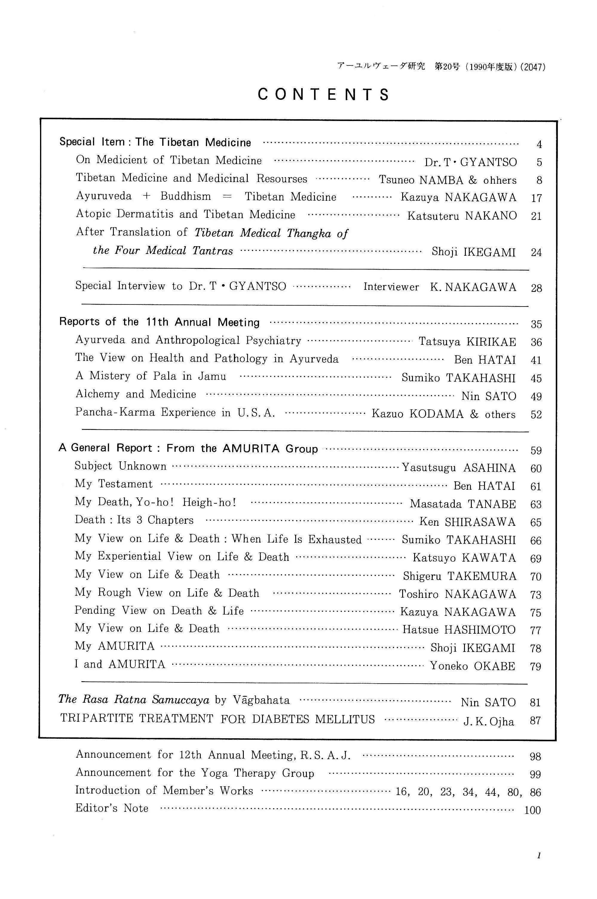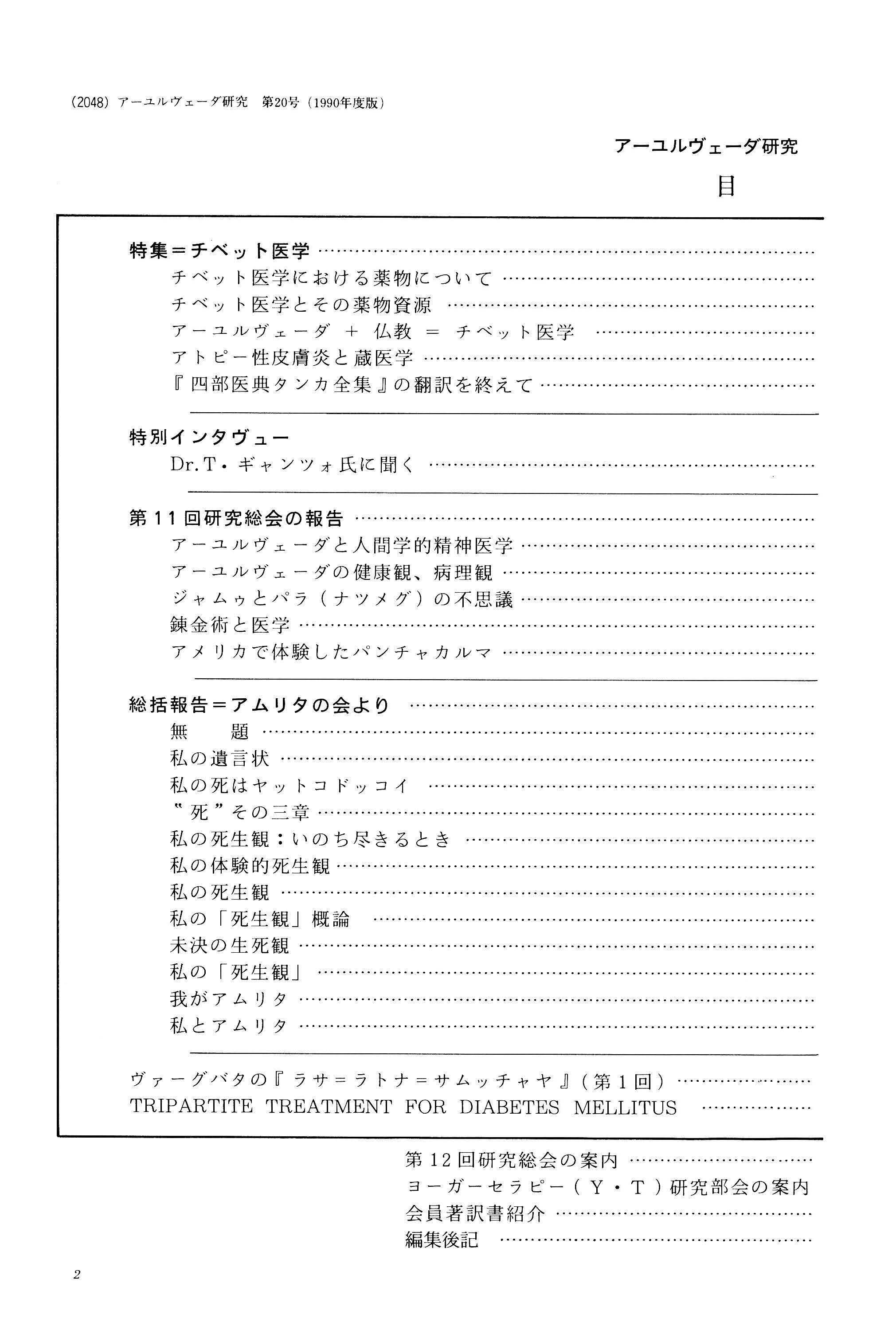 アーユルヴェーダ研究 第20号 1990年度版